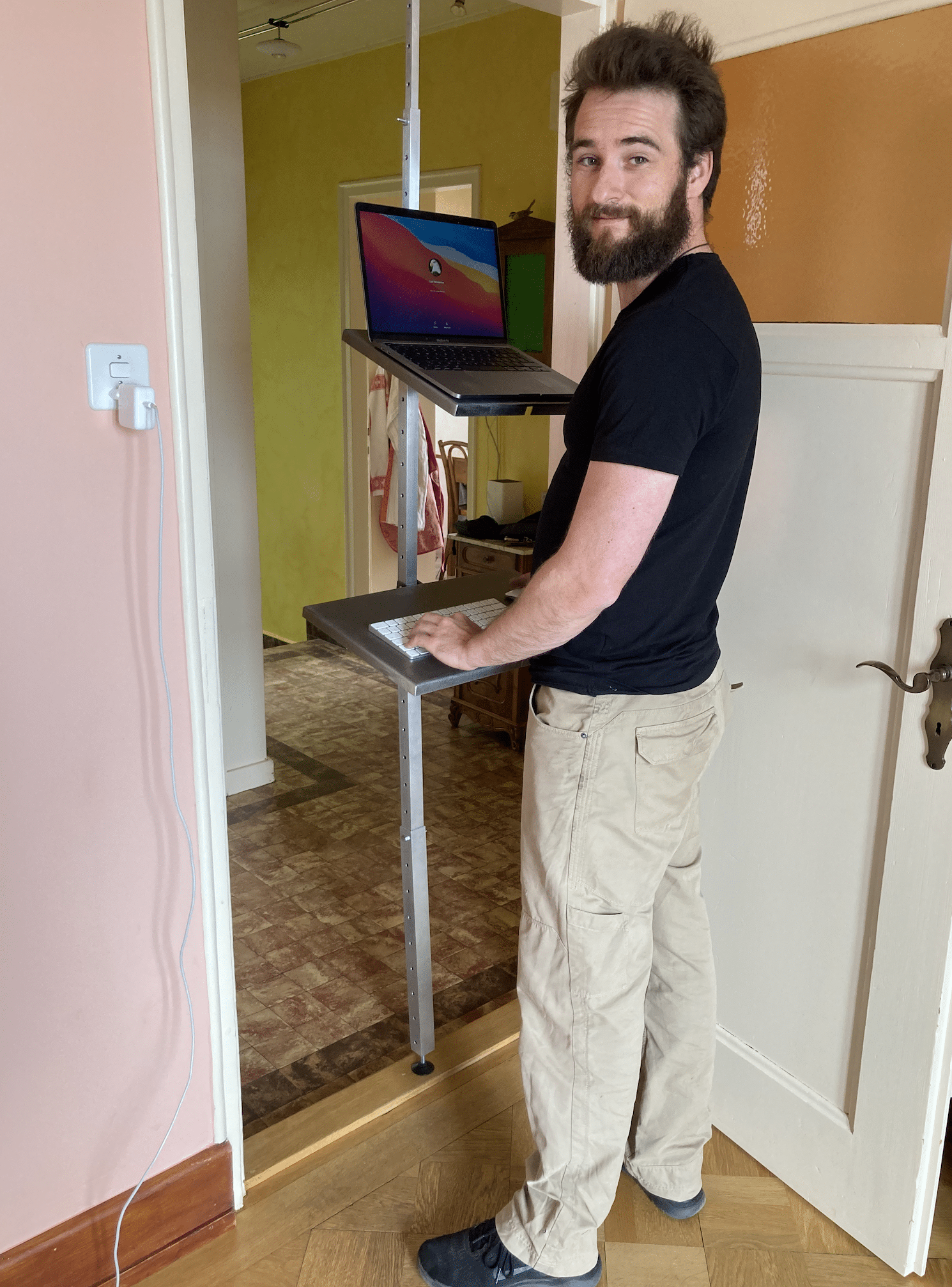 J'ai créé un bureau pour travailler debout a emporter dans un sac (pas d'intérêt de mon audience).
