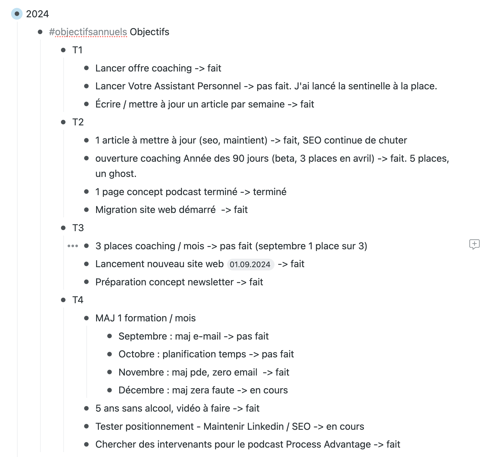 Attention, il s'agit d'une image prise le 20241227. Ça signifie qu'au début de l'année 2024, je n'avais pas inscrit les objectifs T2, T3, T4.