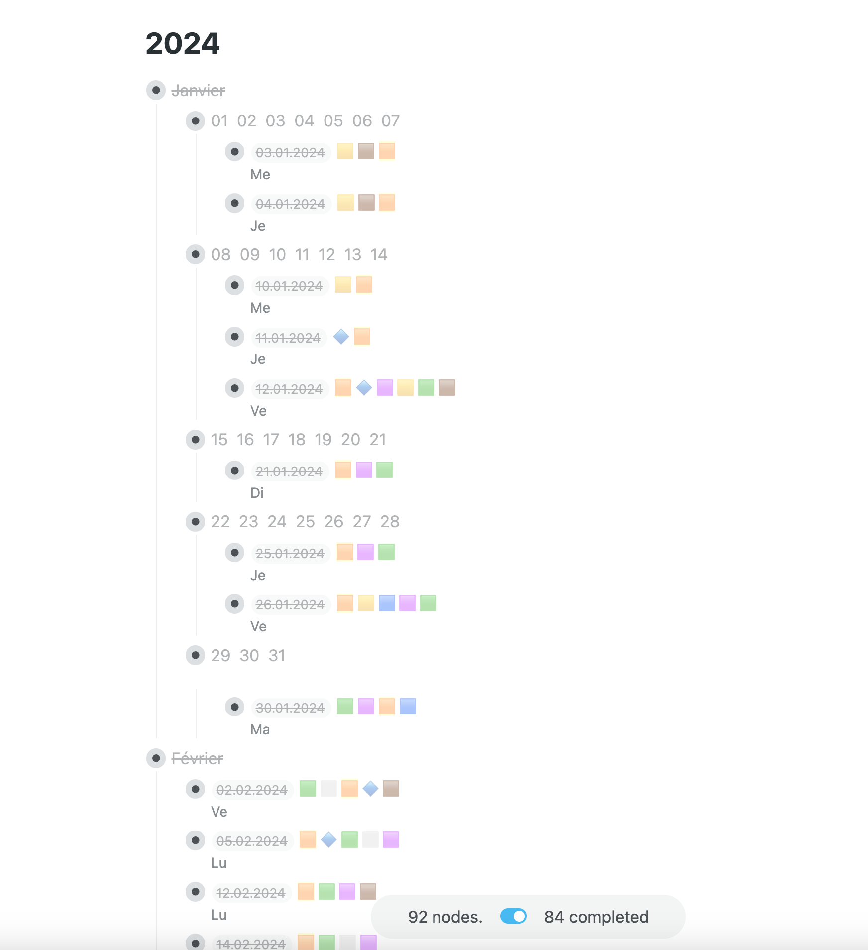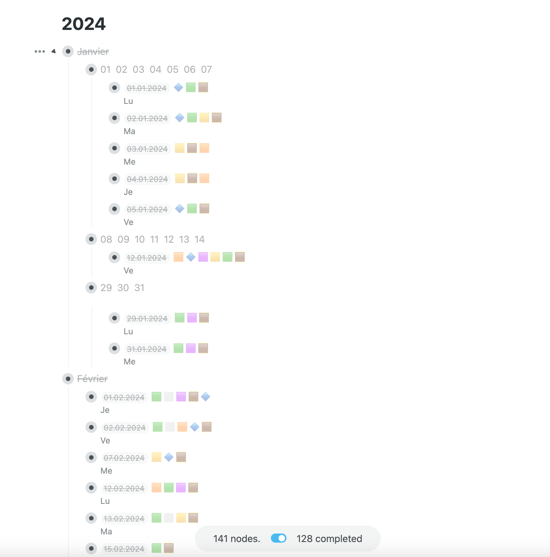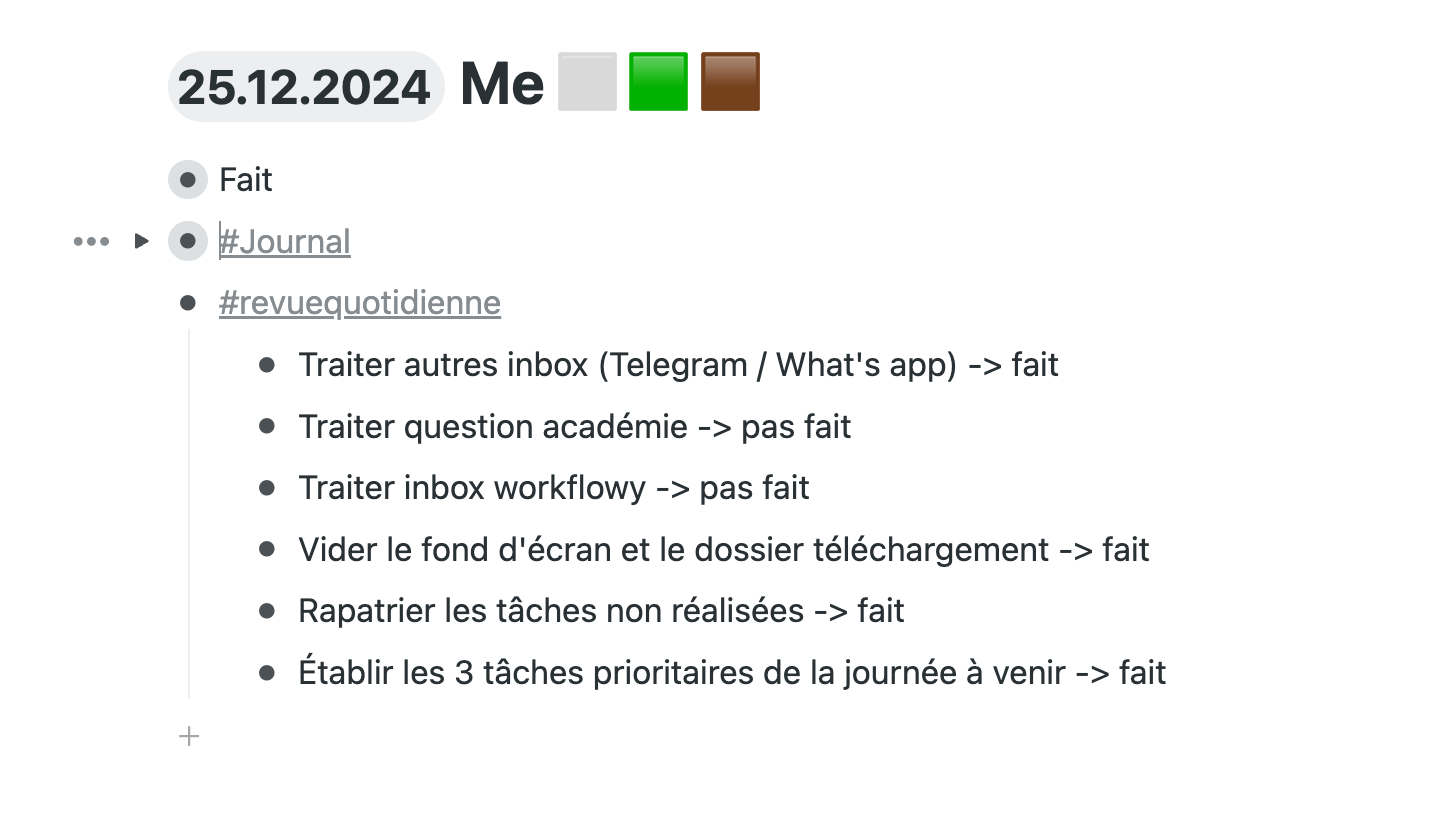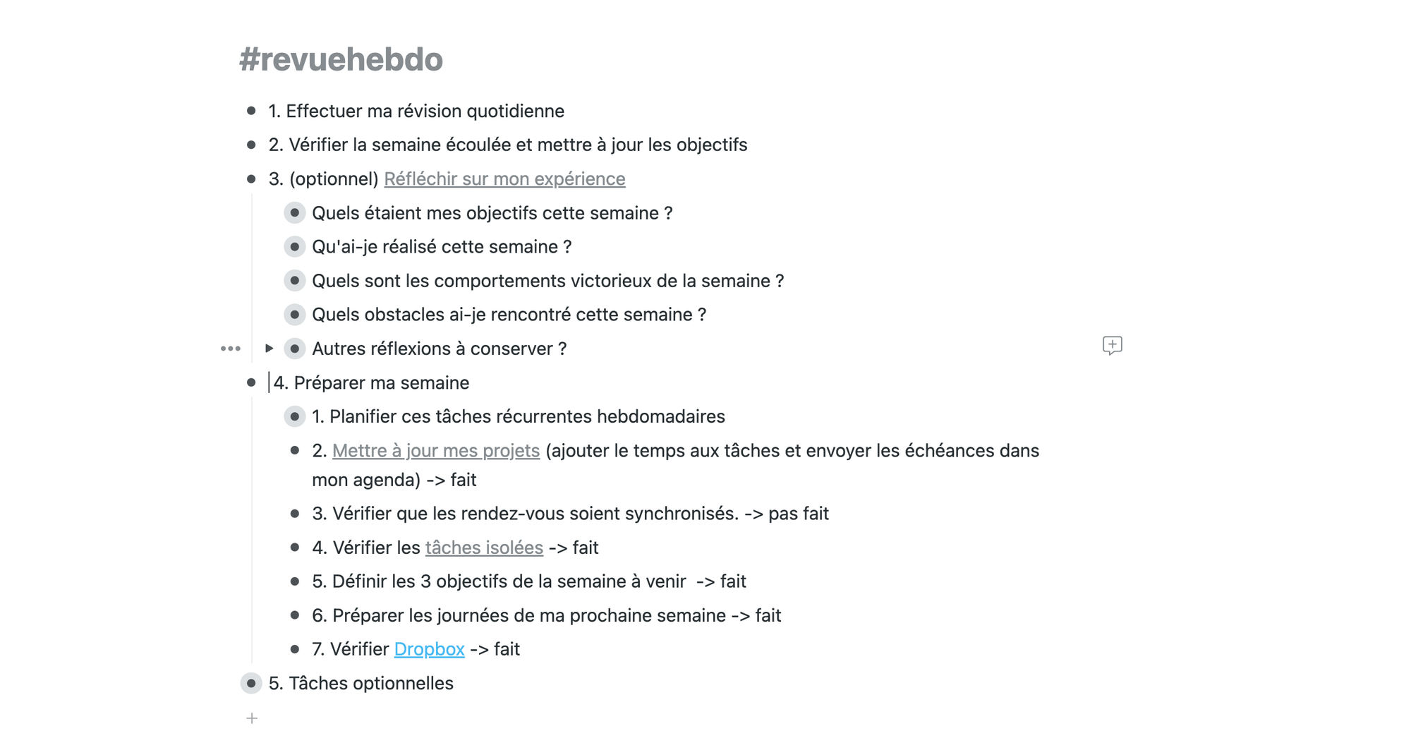 Ce concept de "fait / pas fait", je l'utilise dans mes révision quotidiennes et hebdomadaires.