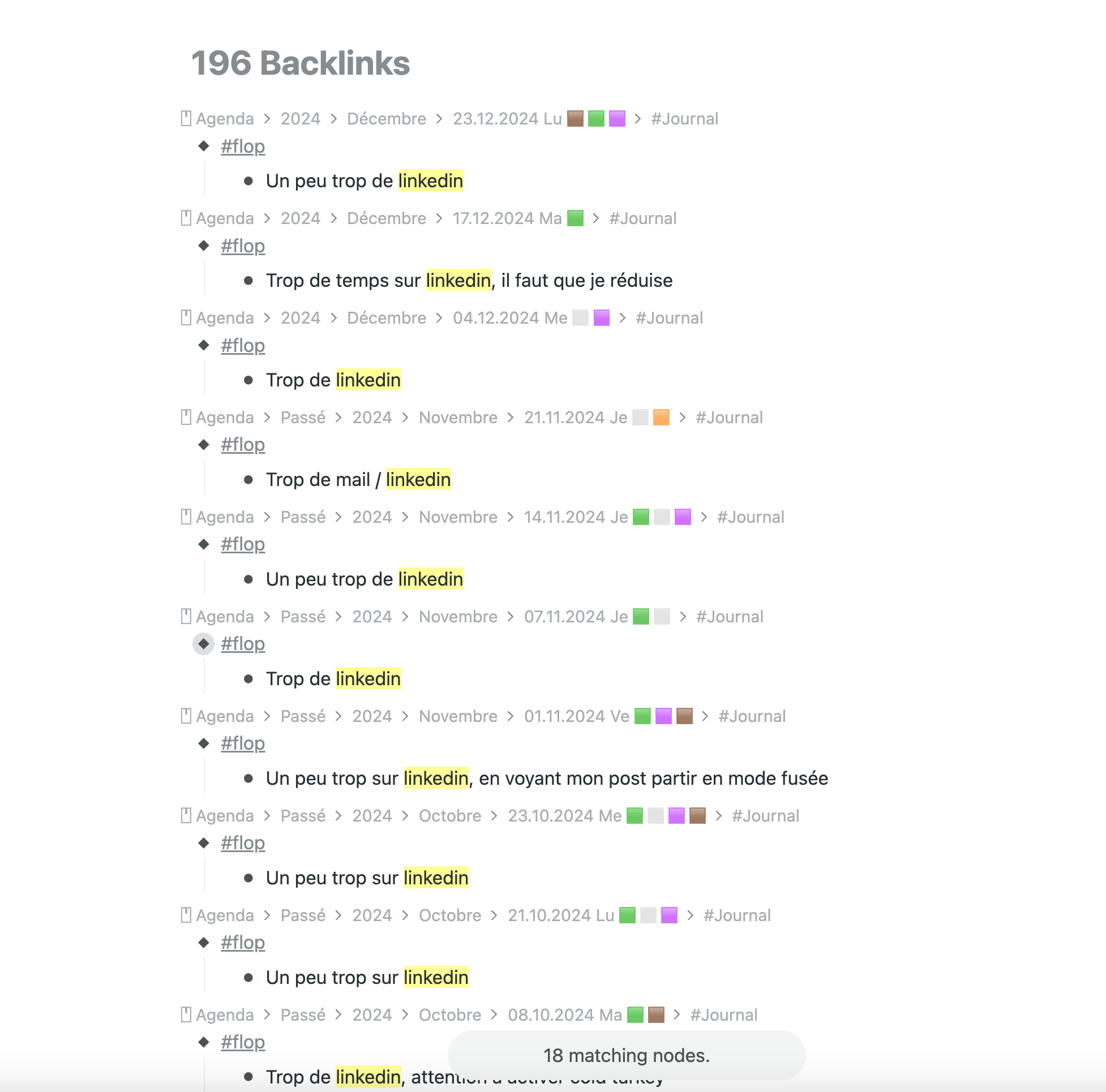 Et en recherchant dans mes flops le mot linkedin, je vois 18 occurrences.