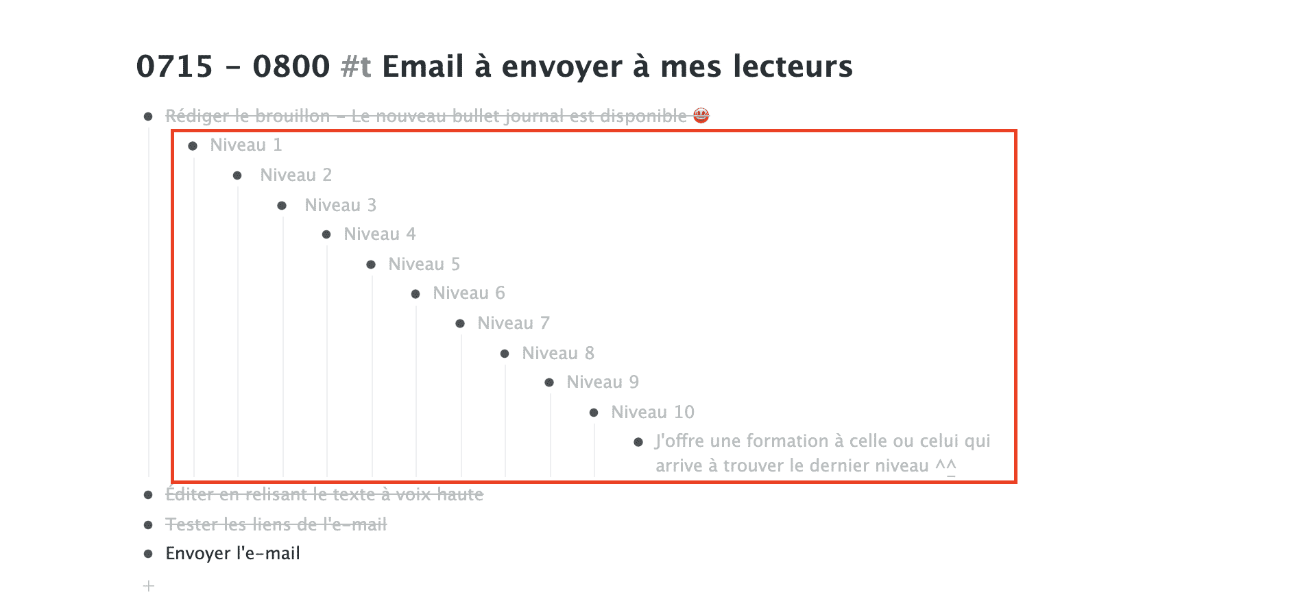 J'ai testé plusieurs applications pour intégrer le bullet journal. Mais l'application Workflowy me semble la plus appropriée.