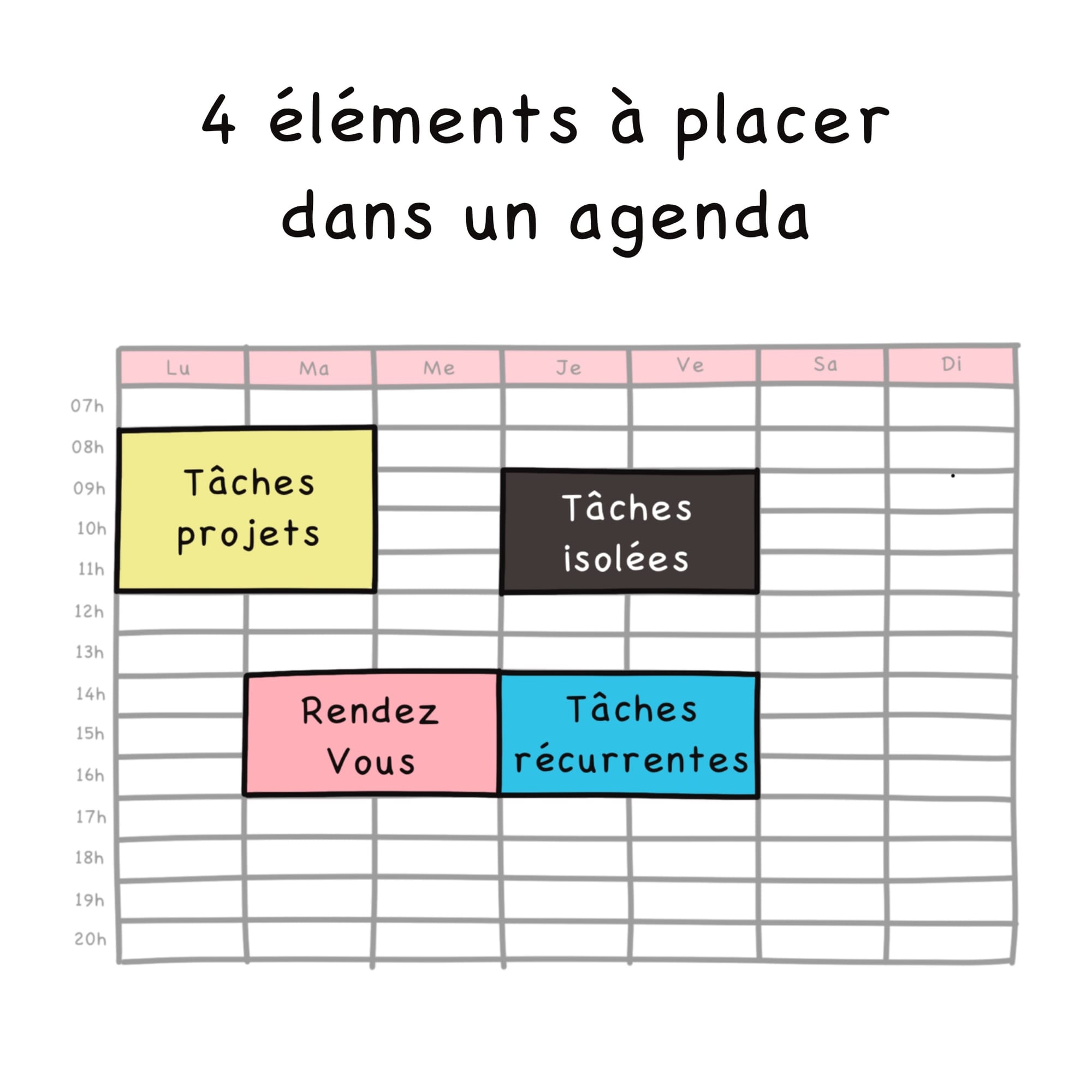 Et ensuite vous avez un seul agenda dans lequel vous inscrivez 4 éléments :