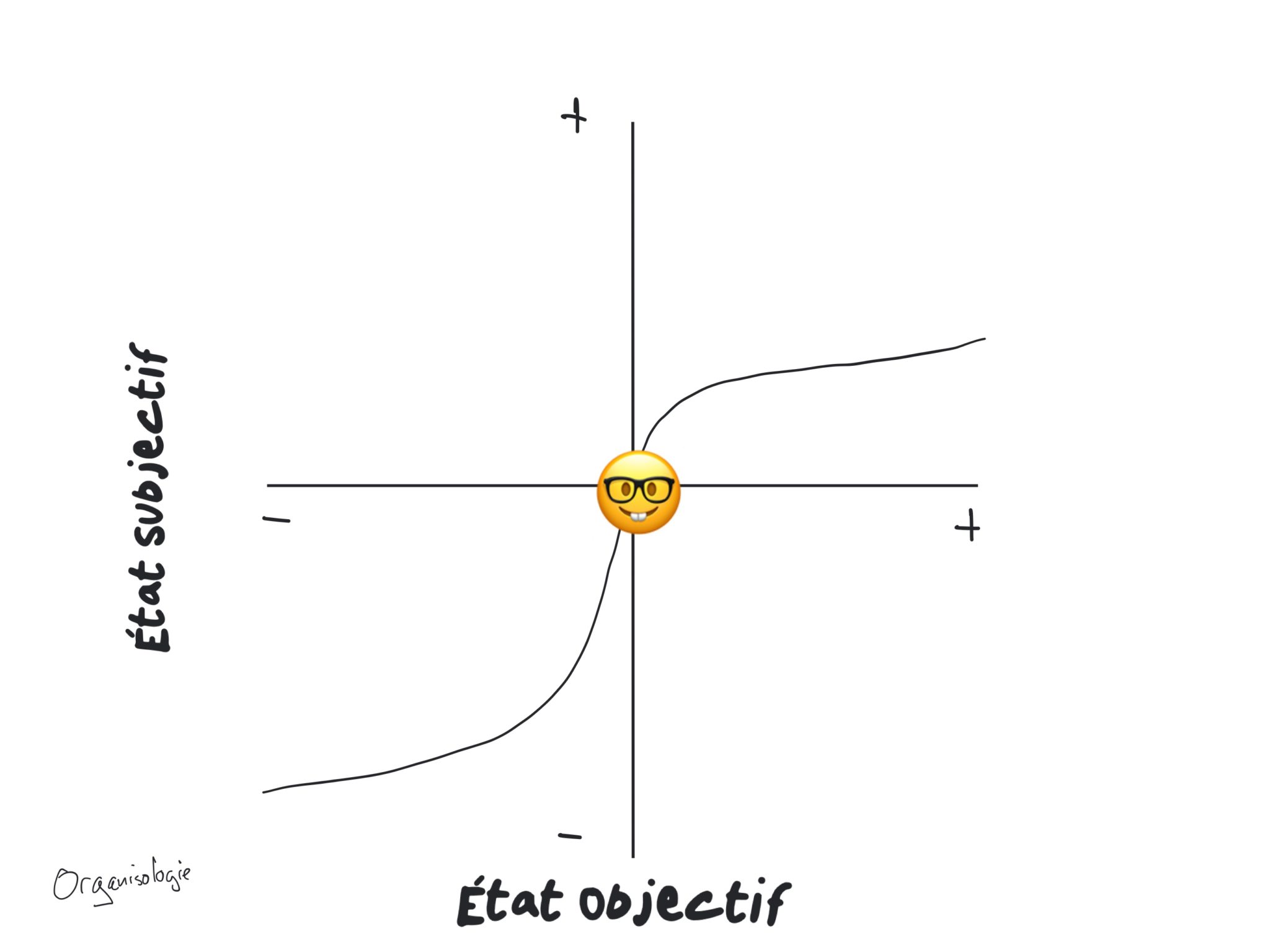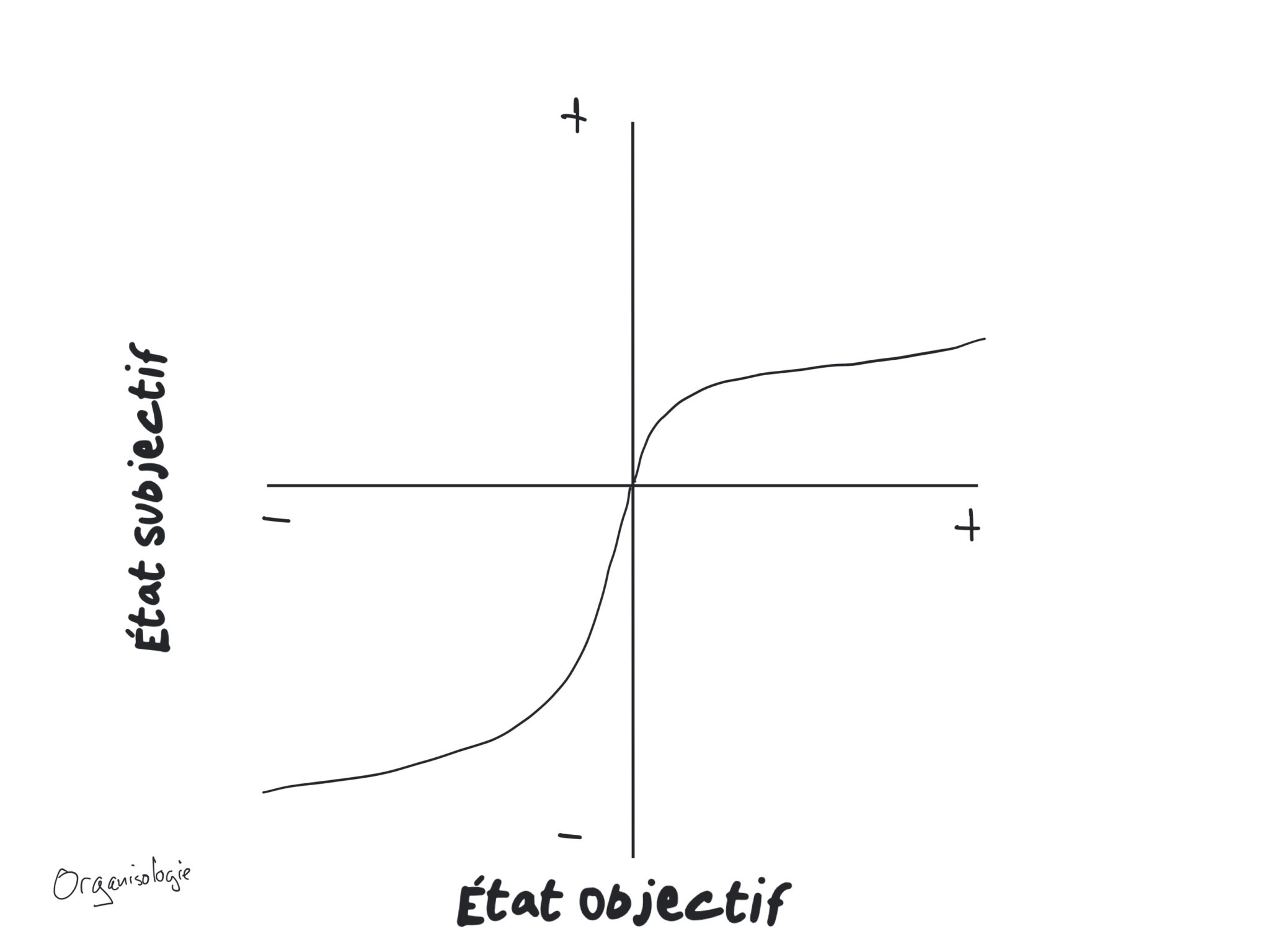 Si la réponse psychologique au changement était conforme à 100% on aurait une ligne droite entre le point en bas à gauche et le point en haut à droite.