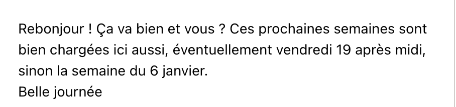 Et surtout, évitez ce genre de message (qui montre que vous n'avez pas de structure en place).